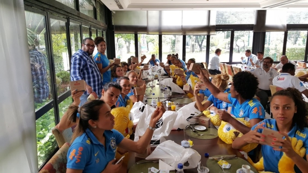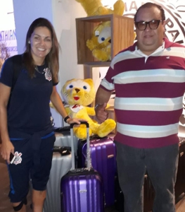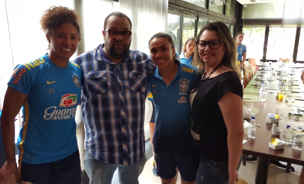 Craque da seleção Andressa Alves na despedida para o Roma e o Repórter Carlos Cavalcante.