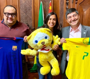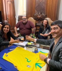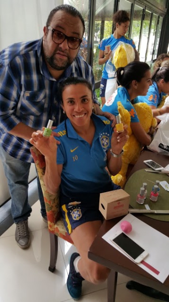 Andressa Alves craque da seleção, presenteia o Secretario Aildo Rodrigues e recebe medalha pela brilhante carreira, do Barcelona para o Roma da Itália futebol feminino.