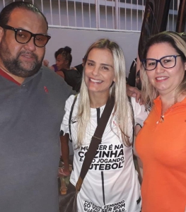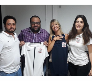 Técnico Artur, Nilton Ramos, Diretora do Futebol Feminino Cris e Camila do Marketing, no inicio do Projeto do Fantástico time do Corinthians Futebol Feminino.
